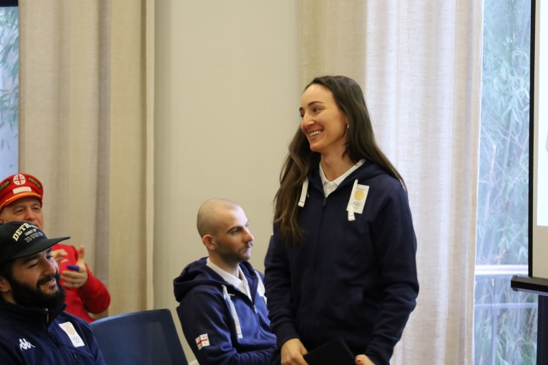 დამსწრე საზოგადოებას მისასალმებელი სიტყვით მიმართეს და ჩვენს სპორტსმენებს წარმატებული ასპარეზობა უსურვეს სეოკ-ის პრეზიდენტმა, საქართველოს ოლიმპიური დელეგაციის ხელმძღვანელმა ლერი ხაბელოვმა, საქართველოში იტალიის ელჩმა მასიმილიანო დ'ანტუონომ, საქართველოს ფიგურული ციგურაობის ეროვნული ფედერაციის პრეზიდენტმა, ოლიმპიური მისიის ხელმძღვანელმა მარიამ გიორგობიანმა.